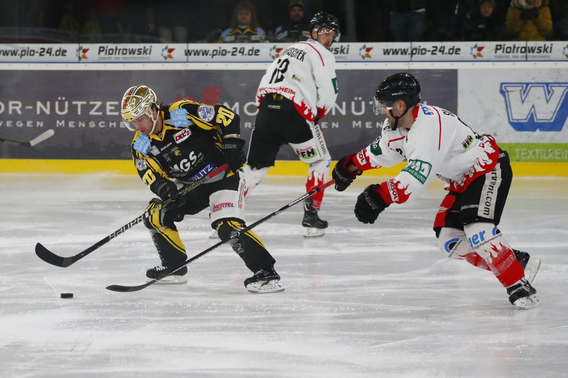 Auch im zweiten Abschnitt hielten die Wetterauer ihre leichten Vorteile, doch Anfangs schafften es die Tigers kaum noch eigene Angriffsaktionen dagegen zu setzten. In der gefährlichen Zone verteidigte man zwar weiter gut und intensiv, doch fast ohne Entlastung wurde der Druck langsam größer. Lohn dafür war Anschlusstreffer durch Bires der einer fast schon abgeblockten Einzelaktion von Goldhelm Dustin Sylvester entscheidend nachsetzte. Die springende Scheibe brachte er jedenfalls über die Linie und sein Team damit zurück ins Spiel. Nun kreierten die Bayreuther aber auch eigene Angriffe, so dass die Partie wieder ausgeglichener wurde. Besonders die Formation Kolozvary, Bartosch und Kunz hatte einige gute Szenen. Ein starkes Zuspiel von Kolozvary setzte z.B. Kunz mit einem Direktschuss an den Pfosten, aber auf der Gegenseite musste auch Herden immer wieder mal rettend eingreifen.