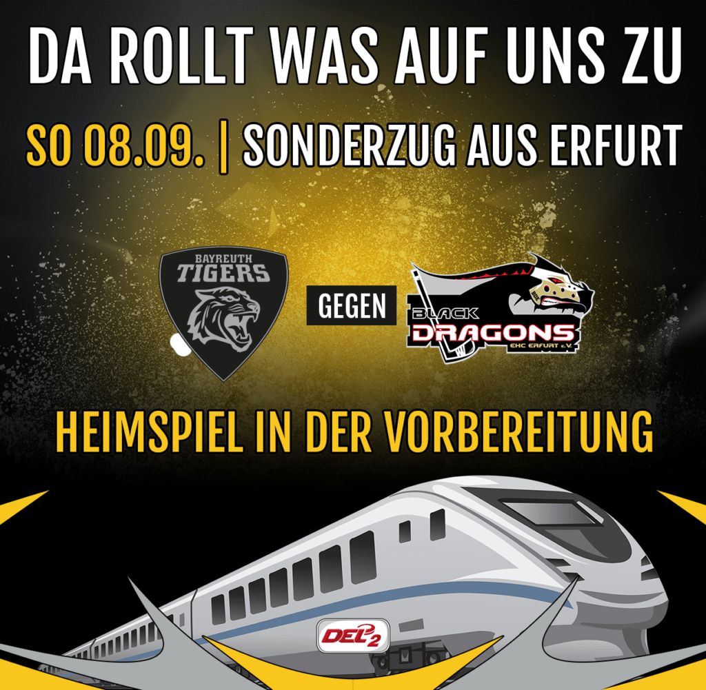 Was haben die in der Überschrift genannten Dinge miteinander zu tun? Teil des Konzepts der Tigers ist es, langfristig zu planen und aus diesem Umstand heraus wurden bereits zum jetzigen Zeitpunkt zwei Vorbereitungsspiele für die kommende Spielzeit vereinbart. So testen unsere Tigers am Samstag, 07.09.2019 um 17.00 Uhr bei den TecArt Black Dragons Erfurt. Am darauffolgenden Sonntag, 08.09.2019 reisen die Black Dragons zum Rückspiel in die Wagnerstadt – und diesen Trip werden die Thüringer Hauptstädter via Sonderzug angehen. Vorbehaltlich der Zustimmung des Sportamtes wird diese Partie voraussichtlich um 16.00 Uhr stattfinden. Bereits vor der laufenden Saison haben die reiselustigen Erfurter während ihrer Saisonvorbereitung einen Sonderzug veranstaltet und waren Anfang September 2018 mit etwa 350 gut gelaunten und stimmungsvollen Fans in Braunlage, um zusammen mit den Harzer Falken ein großes Eishockeyfest zu feiern.